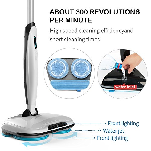 ✪ENVIRONMENTALLY and NONWOVENS:The rechargeable mop comes with 3 interchangeable washable pads save your money and time. Simply remove, pop the microfiber attachments in the washing machine and it will come out like new