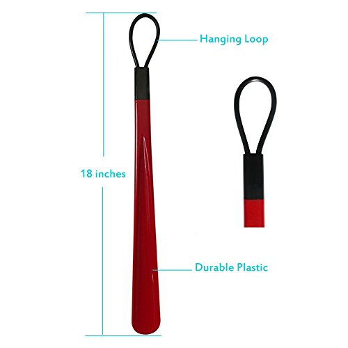 Product Description Protect Your Shoes Spare your shoes from unnecessary wear and tear by using a shoe horn Durable Hard Plastic This shoe horn is very well made and will not bend or break as you press your heel against it. Don't Hurt Yourself When You Using With this shoe horn the days of bending over and straining your back are over. And no more hurting your fingers! Perfect Length Great for either sitting or standing while slipping on your shoes. Shapely, Durable and Smooth A lot of thought was put into the design of this long plastic shoe horn. Soft edges so you won't cut yourself, smooth plastic that makes it easy to slide into any type of shoe, and a shaped tip that fits your heel. It's Faster Your time is valuable, with a shoe horn putting on your shoes takes about 10 seconds, try it! 0