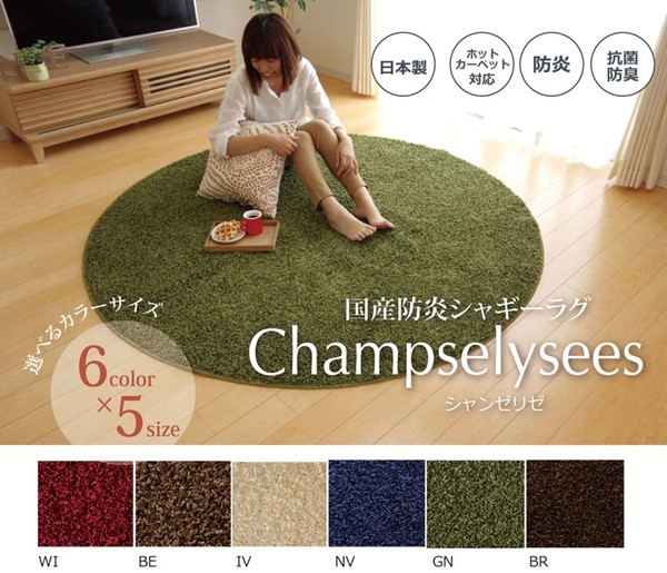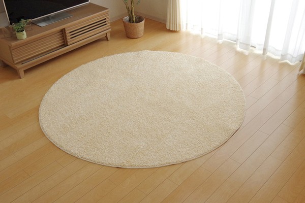 【商品名】ラグマット カーペット 円形 丸型 防炎 抗菌 防臭 防ダニ シャギー タフト 国産 無地 『シャンゼリゼ』 アイボリー 約180cm丸
