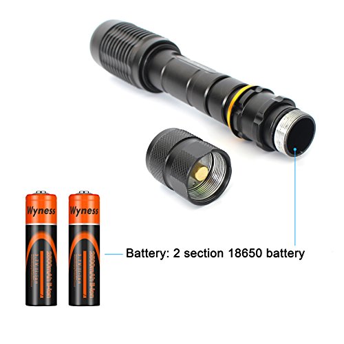 Wyness LED Bulb 1000 Lumen Ultra Bright Flashlight Black(Include 2 x Battery and 1 x Charger)