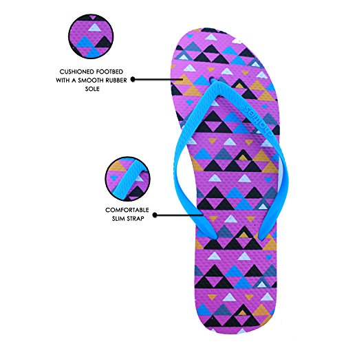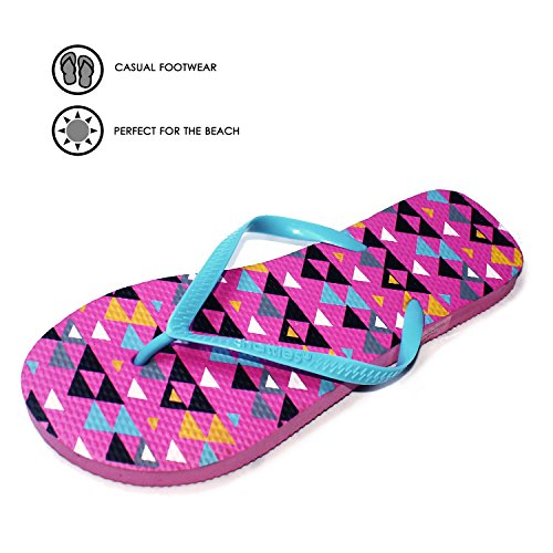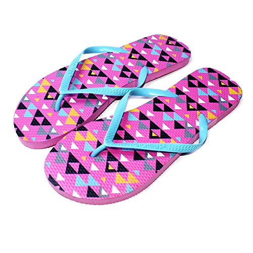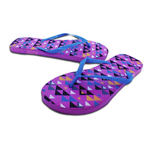 (Chatties)/Women's/Sandals/DIRECT FROM USA/Chatties Women's Casual Blue Rubber Flip Flops Slippers, Triangles Print