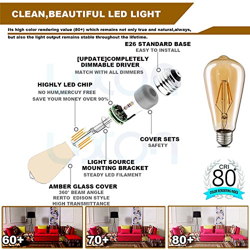 ☛SAVE UP TO 90%---A very high quality UL listed pack of 6 Dimmable LED Vintage Edison Light Bulbs.Cut down your electricity bill up to 90% by replacing 40W Equivalent incandescent bulbs with Luxon 4W LED Edison Light Bulb .