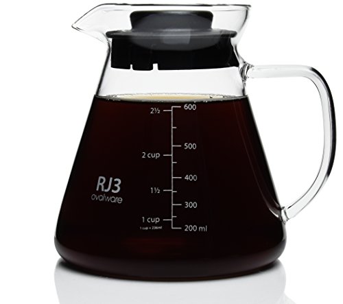 -. Brand : ovalware -. Color : Clear, Black -. EAN : 0642872934344 -. Feature : ➤ ENJOY WARM, RICHLY FLAVORED COFFEE: RJ3 coffee server is made of 2.5mm thick, heat proof and microwave safe glass. The temperature retention construction will effectively keep your coffee warm for longer, allowing you to make the most of your relaxing, coffee drinking time. / ➤ MODERN, ELEGANT DESIGN THAT WILL IMPRESS: This top notch coffee server features a minimal, modern design that is bound to catch everyone's attention. Elevate your kitchen decoration and make a perfect addition to your coffee making tools. / ➤ UNMATCHED VERSATILITY: The Ovalware RJ3 Range Coffee Server can be used for pouring and serving coffee as well as brewing tea too! In addition, it is compatible with hario coffee drippers, katlita wave drippers, stainless steel dripper stands as well as ceramic dripper. / ➤ THE PERFECT GIFT: Apart from making this amazing thick, insulating glass coffee server yours, you can offer it as a gift to a good friend or anyone who likes to enjoy a nice cup of coffee at the comfort of their own home. We bet that they will love it! / ➤ SATISFACTION GUARANTEE - We are a third wave coffee company, dedicated to helping you bring out the best in every coffee bean. We take great pride in the quality of our products, which is why we are offering you a Risk-Free purchase. In the unlikely event our product fails to meet or exceed your expectations, you are free to return it, within the first 30 Days, post-purchase and receive a FULL refund. -. Label : Ovalware -. Manufacturer : Ovalware -. Model : RJ3-03 -. MPN : RJ3-03 -. PartNumber : RJ3-03 -. ProductGroup : Kitchen -. ProductTypeName : KITCHEN -. Publisher : Ovalware -. Size : 600ml -. Studio : Ovalware -. Title : Ovalware RJ3 Range Coffee & Tea Server - 600ml Thick Heatproof Glass Body with BPA-Free Lid -. UPC : 642872934344