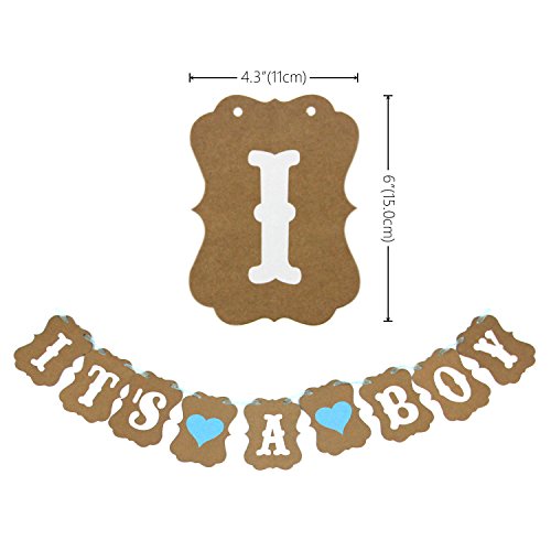 - IT'S A BOY BANNER--Brown banner with white letters, one white rope connect all letters and two blue hearts in a line. Your baby boy shower party need a IT'S A BOY banner.