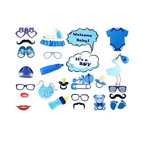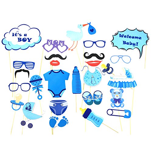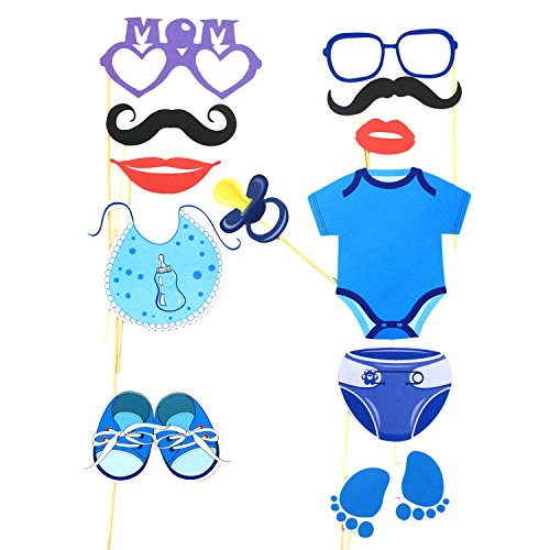- PHOTO BOOTH PROPS--You must want to have a great funny baby shower party to share your happiness with your baby and friends.Our baby boy shower photo booth props can give your party a cute decoration and create much fun for a group photo or self-timer,making your baby shower party full of happiness and sweet memories.The photo booth props can be easily stored and repeatedly used,you can use them for your baby's 1st birthday party or even another baby shower party.