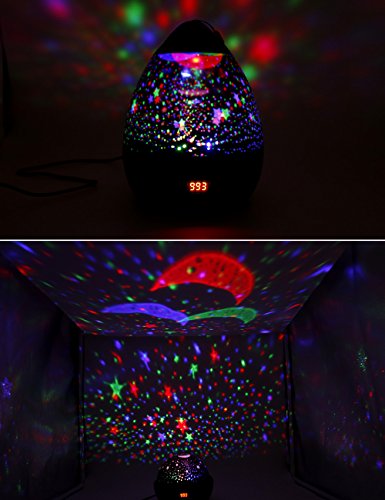 SMART PROJECTION & ADORABLE SHAPE: Unique and colorful star light projector with cute egg shape which projects a night sky of moon and stars on your ceiling or walls. This is great for arousing curiosity in the kids for universe and astronomical science.