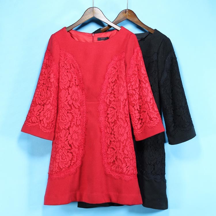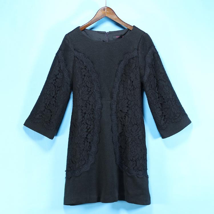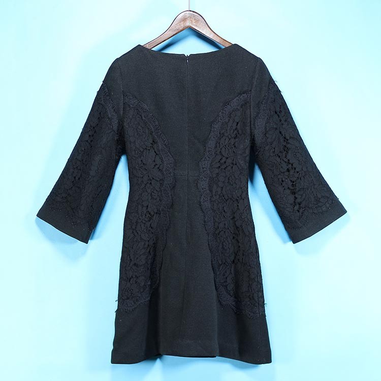 ラウンドネックで身頃と袖に同色ボタニカル柄のレースをアレンジしたデザイン♪