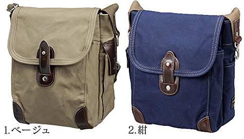 -. Feature : カラー:ベージュ、紺 / サイズ:(約)幅19×高さ24×厚さ9cm、ショルダー長さ(約)82-140cm / 材質:10号パラフィン帆布、オイルレザー牛革、綿テープ、綿ツイル、コイルファスナー、金属部材 / 仕様:開閉】ギボシ留めカブセ 【外側】オ-プンポケット×2、カブセポケット×1 【内側】ファスナ-ポケット×1 【カブセ下】オープンポケット×2、ペンサシ×3 【その他】サイドにナスカン1Dカン1 / 生産国:日本