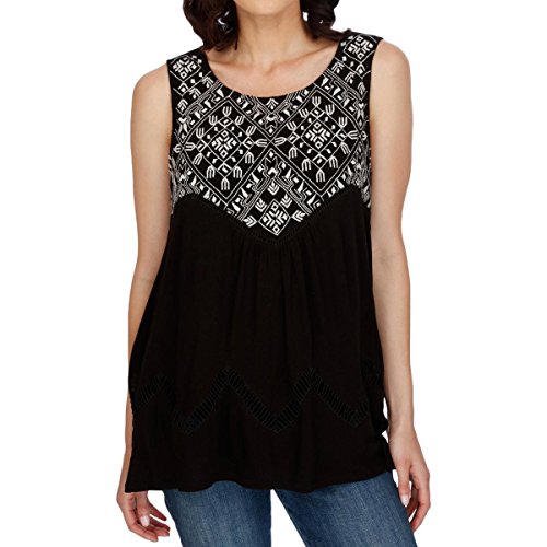 Lucky Brand Women's Shell with Embroiderey Sleeveless Top In Black