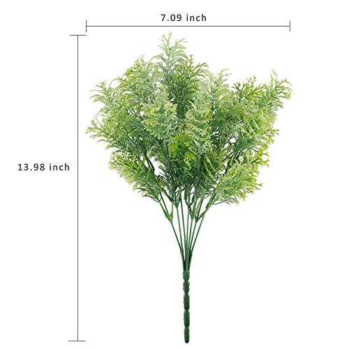 Arrive include 4 bunches of fake cedar shrubs bushes, each stem total length approx 13.98 inch, unfold wide approx 7.09 inch