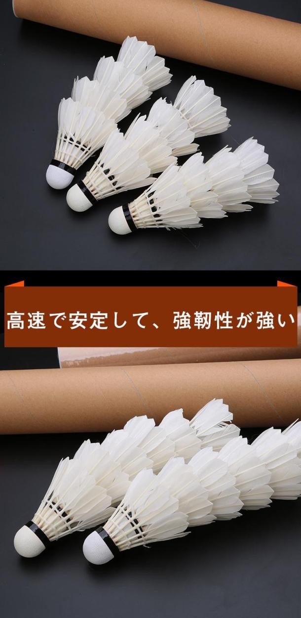 ガチョウ羽根はアヒル羽根より耐久性に優れており、1ダース(12個入り)でコストパフォーマンスがよいです♪【こんな方にオススメ】良いシャトルなのでとにかくたくさん練習したい方に!シャトルを打つ感覚を身付ける最初のシャトルとして!基礎打ちやノック練習に最適です♪【数量】1ダース(12個入り)