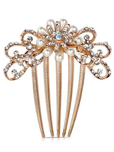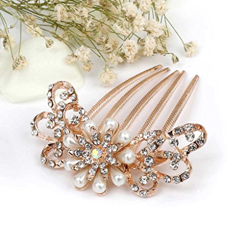 Aukmla Hair Comb Accessories with Bead for Bridal Wedding Women (Flower Style)