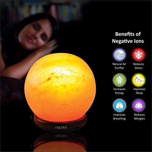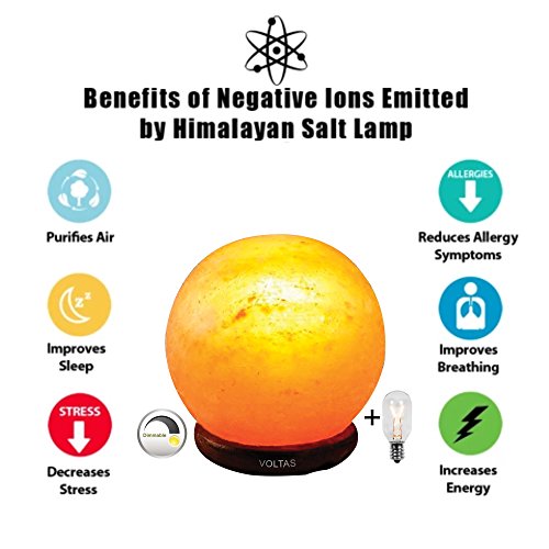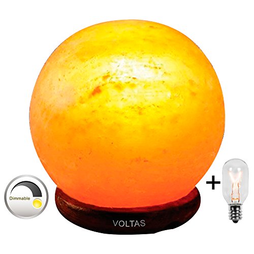 Voltas Salt Lamp Globe is carved out of Premium Salt Crystal, comes with a Dimmer control switch, 6ft UL listed cord and two 15W bulbs one for the Globe lamp and one as a FREE spare replacement.