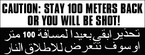 -. Title : Caution Stay 100 Meters Back Bumper Sticker (military arabic decal)