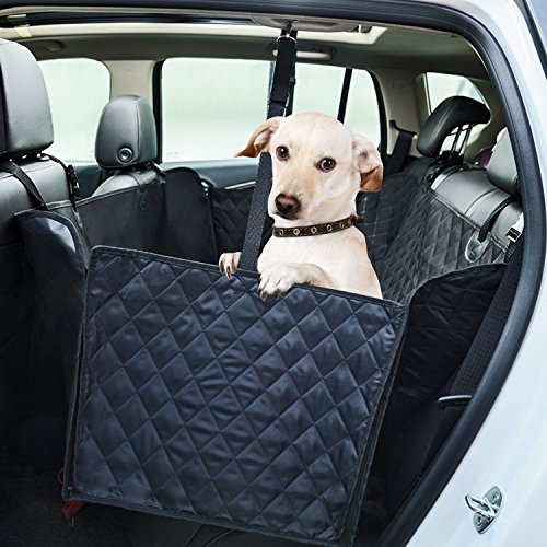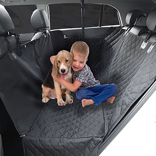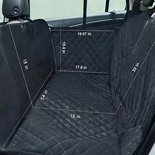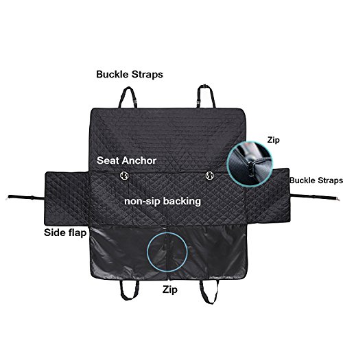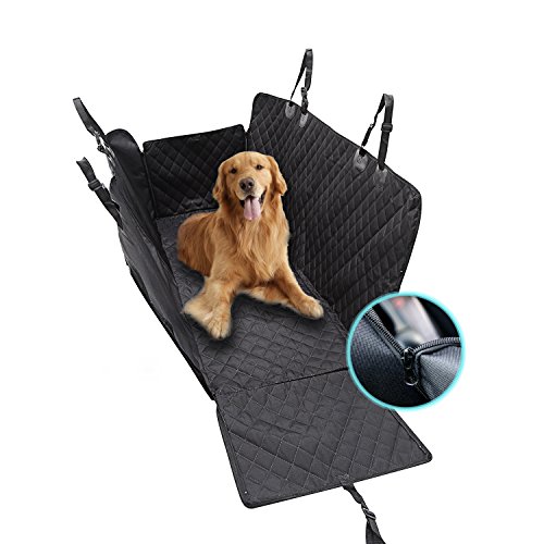 -. Feature : PROPER SIZE - Size of 54" W x 58" L will suit for most cars,trucks and SUVs.Our product cover the entire back seat, for ultimate protection and hassle-free rides.For a better shopping experience,still hope you will check the size of your car seat / Durable & WATERPROOF: Constructed out of waterproof heavy-duty oxford fabric,comfortable PP cotton mat and TPU material.Keep your back seat from any liquid,dirt,scratches,hair & fur, Etc. No more endless sweeping / Nonslip & SAFE - Our dog seat cover has a non-slip surface to prevent your dog from slipping. Also have nonslip backing and seat anchors to prevent seat cover from sliding around. Built-in 2 openings for your seat belts. All this to ensure your dog is safe / HAMMOCK WITH SIDE FLAPS - Side flaps can protect your car doors from scratches.Also easier for your dog to get in or out.Versatile split zipper hammock to allow pets and kids can share the back seat when zip up for a full hammock or zip down for half ,so dogs and passengers can travel together / EASY TO INSTALL & CLEAN - Easy to install with quick release clips. Just snap the buckle straps around your car's headrests and tuck in the seat anchors. Easy to clean with a damp cloth or vacuum