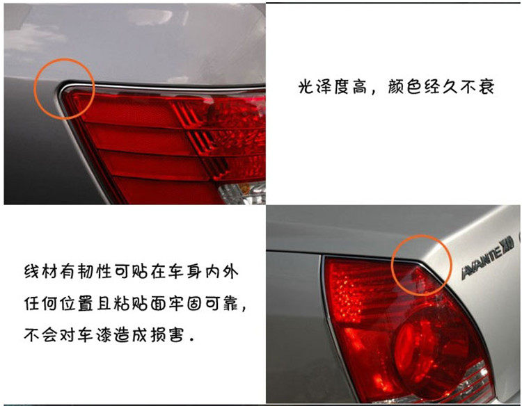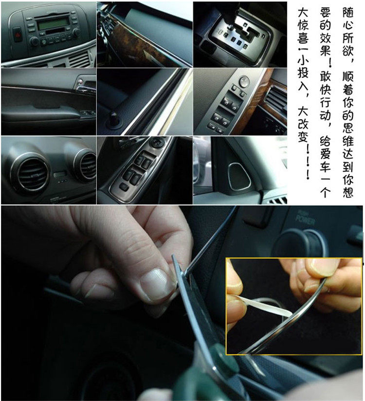这是一款采用环保高光树脂制作的汽车装饰线条,光泽度高,良好的韧性性,颜色经久不衰,可以尽情发挥您的创意贴在车身内、外任何位置,不会对车漆造成损害,背面带3M强力双面胶粘上即可,安装极其简单,完全DIY!
