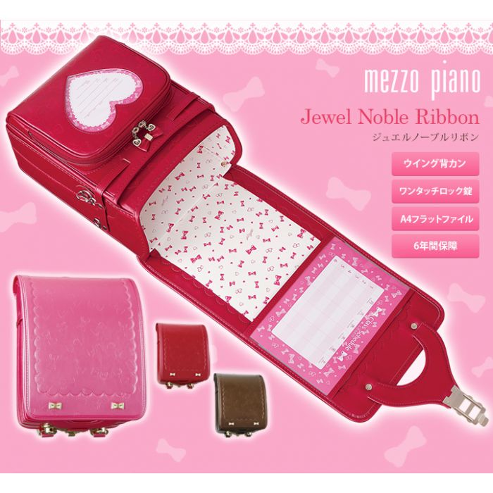 【2017년도 모델】소녀가 정말 좋아하는,로맨틱으로 러브 리인 세계에서 넘치는 메조피아노 시리즈의 란도세루(초등학생이 어깨에 매는 가방)「jewel noble 리본」.이쪽은,최근 인기가 높은 펄조가 씌우게 사랑스러운 리본의 형압을 세운 타입입니다.