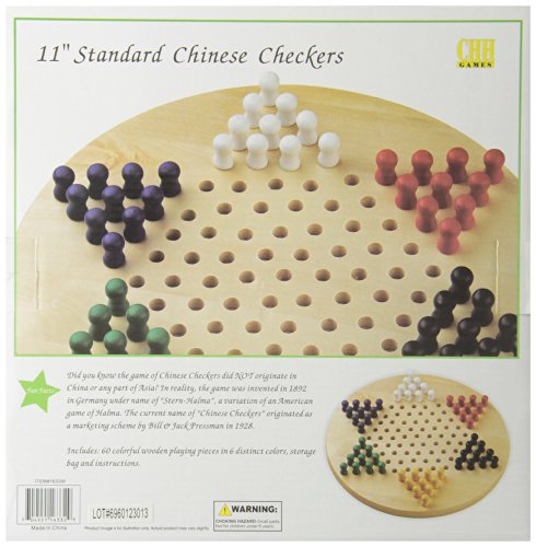 -. Binding : Toy -. Brand : CHH -. EAN : 0704551163329 -. Feature : Classic Game / Fun for the whole family! / 11 inches board / Great family fun -. IsAdultProduct : 0 -. ItemPartNumber : CHH_1633w -. Label : Flat River Group -. LegalDisclaimer : Warning: Contains small parts, may be hazardous for children. -. Manufacturer : Flat River Group -. Model : CHH -. MPN : CHH_1633w -. PackageQuantity : 1 -. PartNumber : CHH_1633w -. ProductGroup : Toy -. ProductTypeName : TOYS_AND_GAMES -. Publisher : Flat River Group -. Studio : Flat River Group -. Title : 11" Standard Chinese Checkers -. UPC : 885918497995 -. Warranty : No Warranty