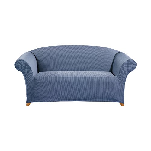-. Title : Sure Fit Simple Stretch Ticking Stripe 1-Piece - Loveseat Slipcover - Cadet Blue (SF45006)