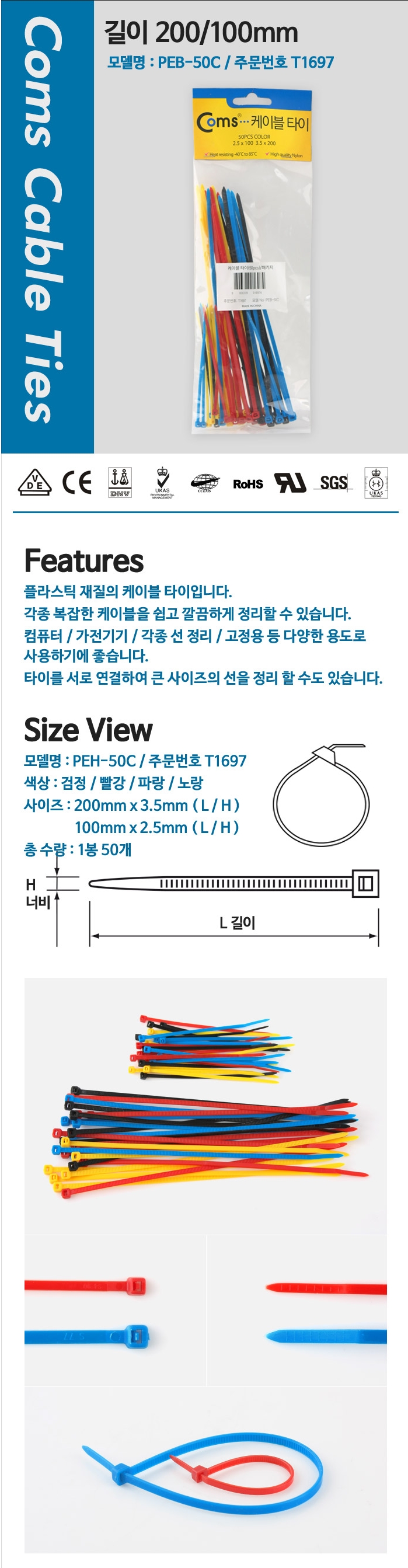 4-color set of cable ties 100mm x 2.5mm 50pcs