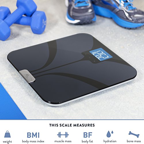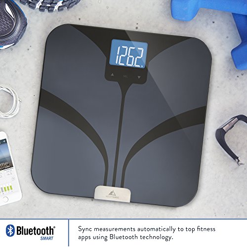 -. Feature : HELLO! WE ARE THE WEIGHT GURUS: Thank you for taking a minute to learn more about our scale. Our goal is to help people master their health. That's why we designed the Weightless Scale to make weight management more convenient with smartphone tracking. Read on to see if this is the right scale for you. / SMARTPHONE TRACKING: If desired, sync weight automatically with your Bluetooth Smart Ready device. Store entries, view trends and chart progress. (Smartphone not required for basic scale use). / WORKS WITH: iPhone 4S, 5, 5S, and above; iPod Touch 5th Gen and above; iPad 3rd & 4th Gen, mini, air, and above; Select Android Devices (Check Android Bluetooth Smart compatibility on your device by downloading the "Bluetooth Smart Checker" app from the Google Play store. / OUTSTANDING CUSTOMER SERVICE: 100% satisfaction guarantee. 5 year warranty. Helpful product guides (instruction manual and setup guides). Questions or concerns? Email: info@becomeGurus.com / ALL THE FEATURES YOU'LL WANT: Auto Step-on (turns on automatically when weighing). Auto Off. Auto calibration. Auto user detect (important for multi-user homes - e.g. husband/wife). Supports up to 8 users. Non-slip, scratch resistant feet. 4 ultra-precision weighing sensors. 400lb capacity. BIA Analysis for BMI, Body Fat, Lean Mass, Water Weight and Bone Mass. +/- .1 lb resolution. Durable tempered glass construction. Large weighing platform (150 sq inches). Extra Large, Backlit LCD. Kg / Lbs. 4 AAA batteries included.