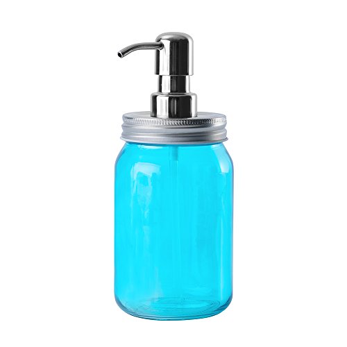 Blue Mason Jar Soap Dispenser with Stainless Steel Pumps and Lid Rust Proof Glass Soap Dispenser for Bathroom or Kitchen 16Oz by Jaborn