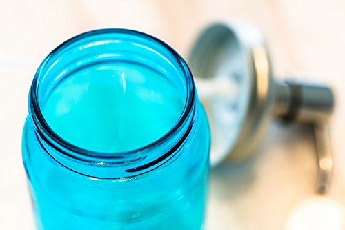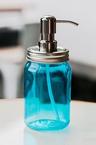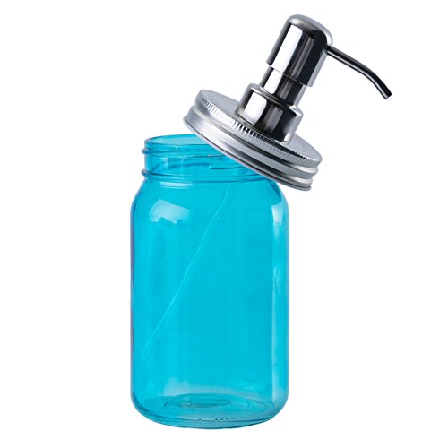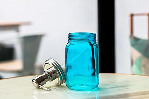 Item Product:Blue Mason jar soap dispenser made of solid study clear glass furnished with premium quality stainless steel on the pout and lid painted with our special coating to prevent rusting