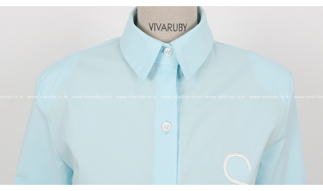 바스트라인에 알파벳 자수 디테일로 포인트를 주었답니다