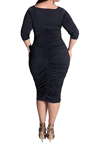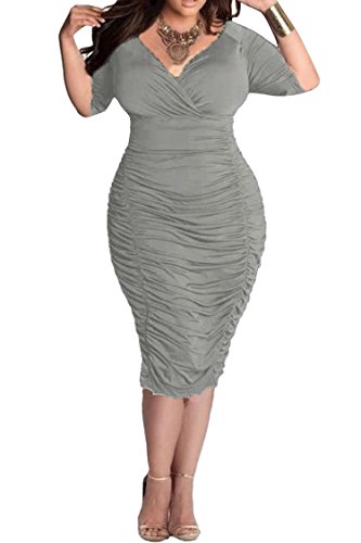 LaSuiveur Womens V Neck Low Bust Cascading Ruffle Slim Fit Plus Size Dress
