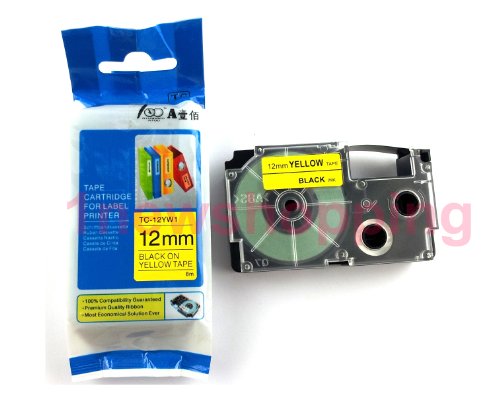Great quality Compatible for Casio Tape 12mm BLACK on Yellow Label XR-12YW1
