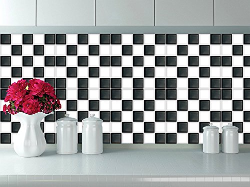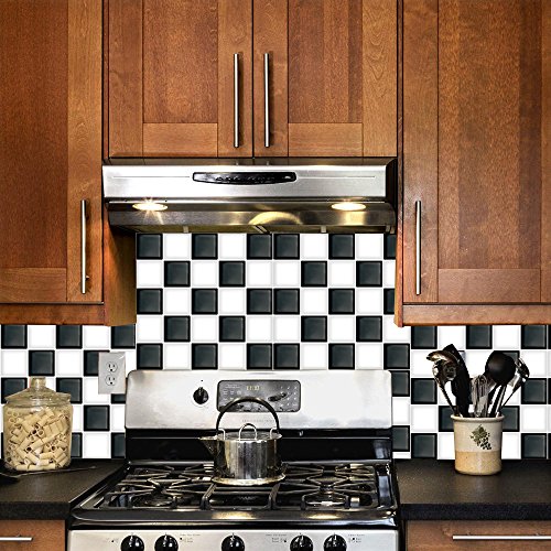 Cocotik Peel & Stick 10"x10" Self-Adhesive 3D Vinyl Wall Tiles , Black and White , Pack of 6