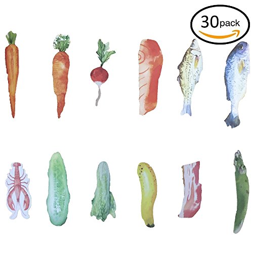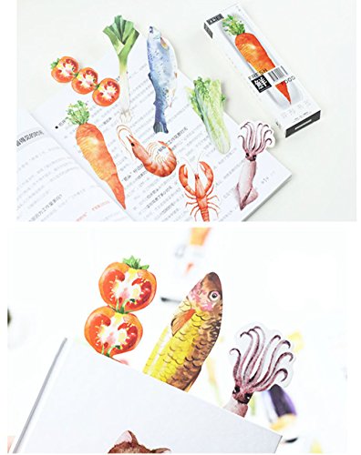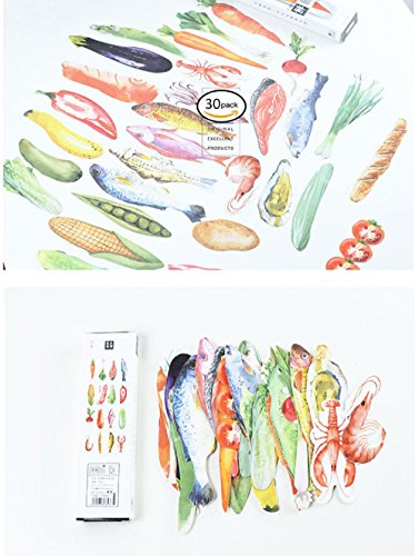 Sudapapa 30Pcs Japanese Style Cute Fresh Food Paper Bookmarks for Books Fish Vegetables Bookmark School and Office Supplies Bookmarks for Kids Note Card Gifts