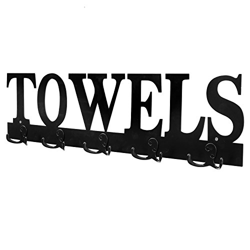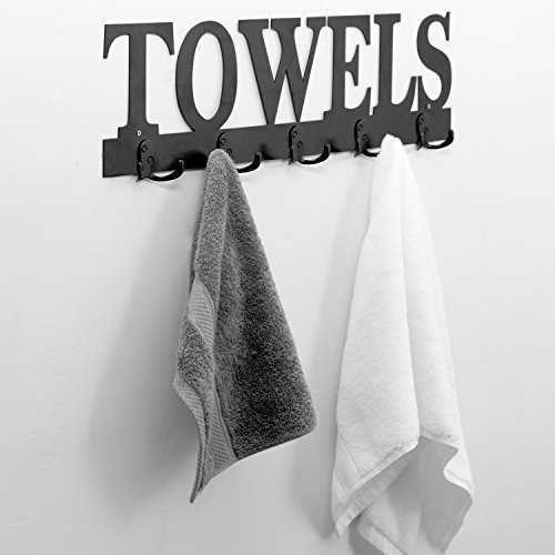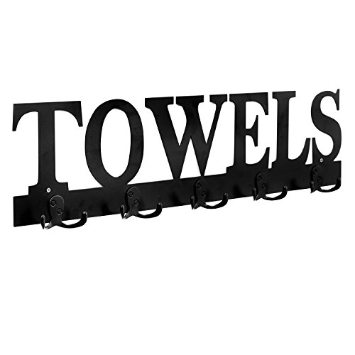 Black Metal TOWELS Design Wall Mounted 5 Dual-Hook Towel Hanger Rack for Bathroom or Kitchen