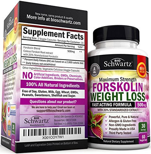 BioSchwartz Forskolin for Weight Loss has the highest potency on the market, 500mg per serving for MAXIMUM RESULTS!