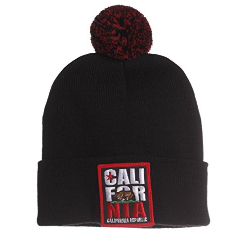 -. Title : California Republic Bear Cuff Pom Pom Beanie Knit Hat Cap (One Size, Black Red)