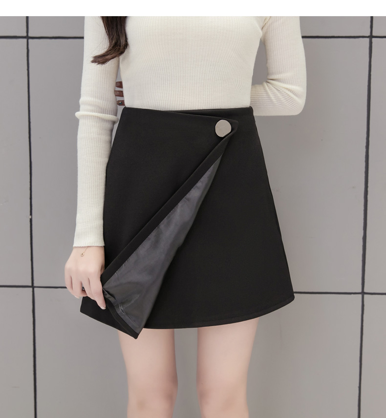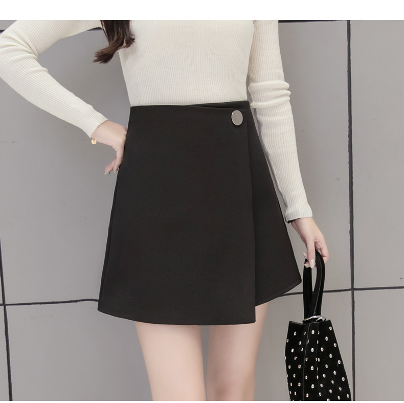 大きいパッチボタンがワンアクセントのラップ風スカートです♪トップスもモノトーンで合わせるとうまく着こなせます。女らしさを際立たせる着こなしに必須なアイテムです★