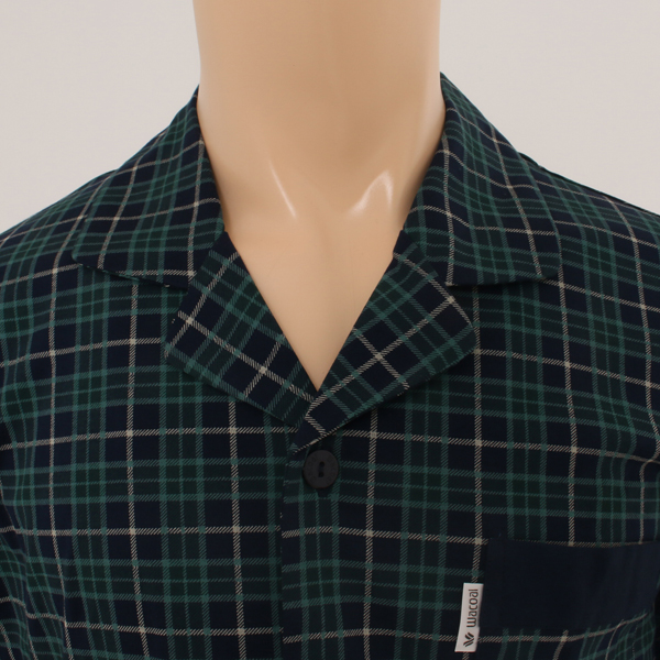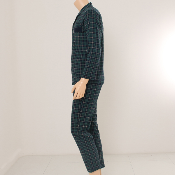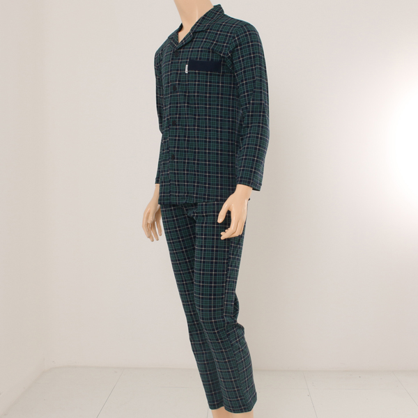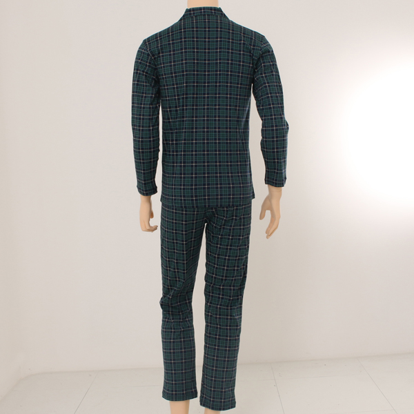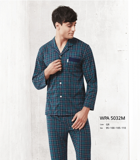 부드럽고 신축성이 좋으며 밀도감이 높고 짱짱한 수입원단에 젊은 감각의 체크나염을 프린팅한 남자 파자마.