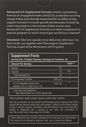 -. Binding : Misc. -. Brand : MenScience Androceuticals -. EAN : 0185219000376 -. Feature : Helps lower body fat by increasing the rate of metabolism and the transformation of body fat into energy* / Supports metabolic processes that lead to a net increase in lean muscle mass* / Promotes antioxidant processes that play an important role in the body's immunity and cardiovascular activities* / Completely natural, effective and 100% stimulant-free proP.R.Ietary formulation of active CLA isomers for maximum results* / Weight Management -. Label : MenScience Androceuticals -. Manufacturer : MenScience Androceuticals -. MPN : 41031-3 -. PackageQuantity : 180 -. PartNumber : 41031-3 -. ProductGroup : Prestige Beauty -. ProductTypeName : LUXURY_BEAUTY -. Publisher : MenScience Androceuticals -. ReleaseDate : 2015-02-01 -. Studio : MenScience Androceuticals -. Title : MenScience Androceuticals 3 Month Supply Advanced CLA Supplement Formula -. UPC : 185219000376