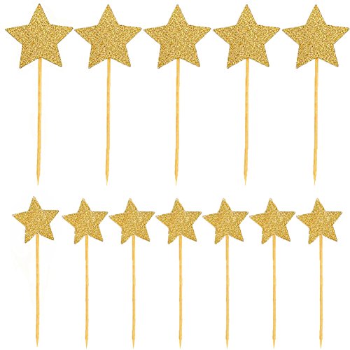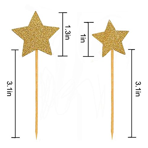 Specification: Big star cupcake toppers: 1.3inches (3.5cm) Small star cupcake toppers: 1inches (2.5cm) Toothpick length: 3.1 inches (8cm) Material: Bamboo toothpicks