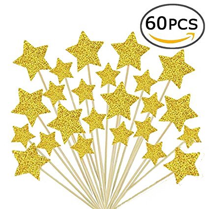 Studio : Laviee Publisher : Laviee Binding : Toy Product Description Laviee 60 PCS Cupcake Toppers Gold Star Cake Toppers for Wedding Birthday Baby Shower Party Decoration