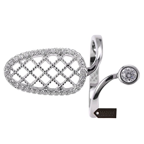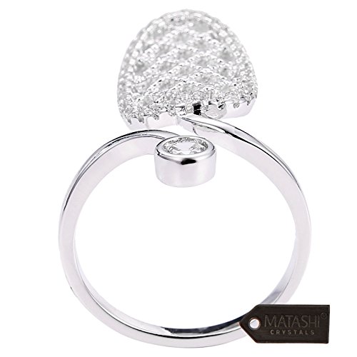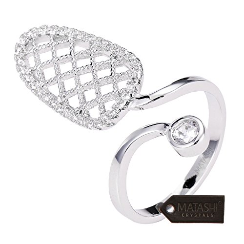 Rhodium Plated Almond Shape Wrap Ring By Matashi Size 6:Unique/Modern Accessory For Women & Girl,Elegant Gift Idea,Non-Traditional & High-End,CZ Stone