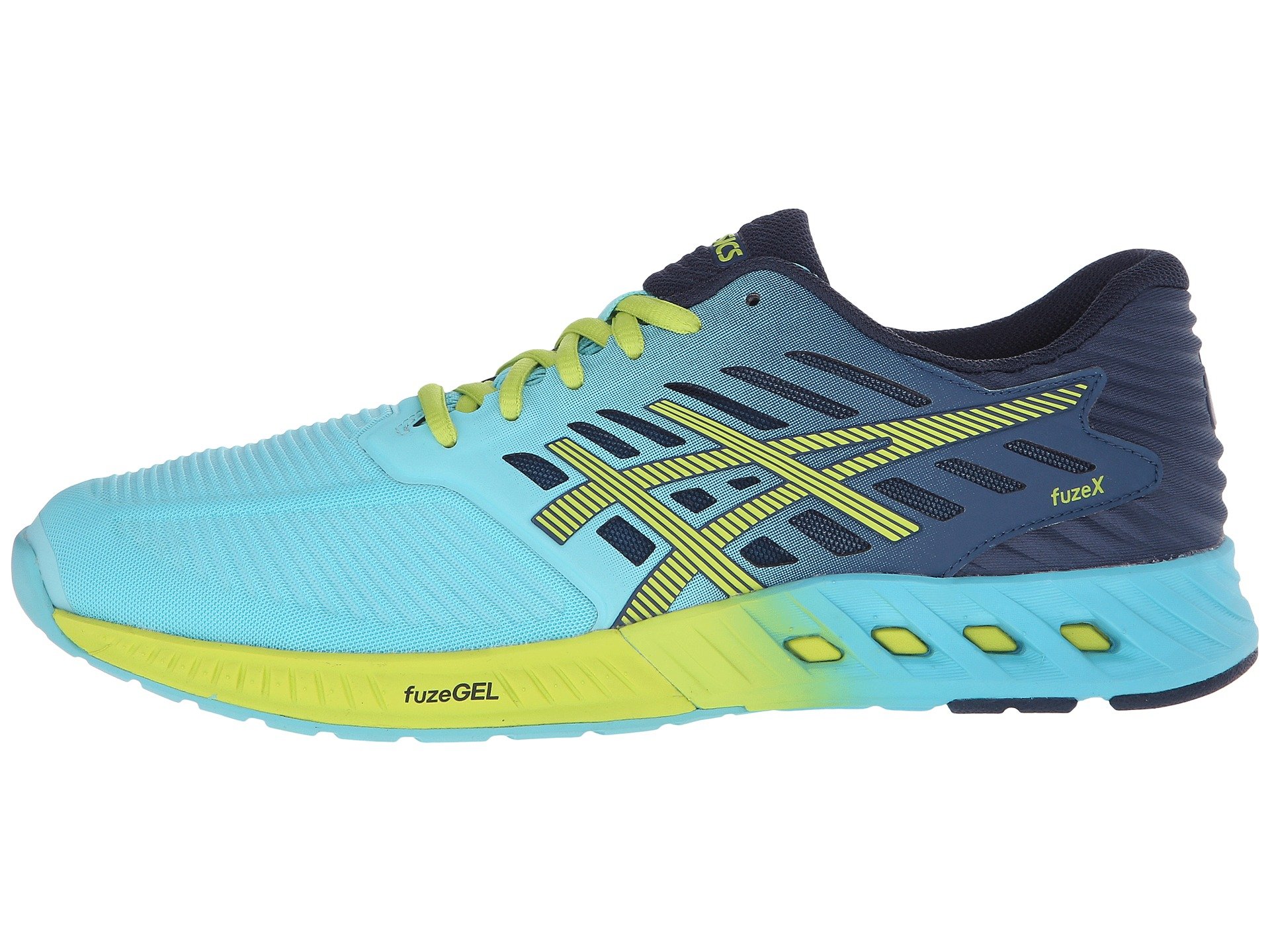 | Product Information SKU: #8919026Discover the perfect blend of lightweight cushioning in the dynamic ASICS? FuzeX™ running shoe!Support Type: Neutral to underpronation.Cushioning: Lightweight, flexible response. Surface: Road. Differential: 8 mm. Highly-breathable, lightweight mesh upper with thin synthetic film overlays. Seamless upper construction helps reduce the likelihood of irritation. Lace-up closure. Plush tongue and collar. Soft fabric lining offers a great in-shoe feel. Removable ComforDry™ sockliner offers anti-odor properties to keep feet feeling cooler and drier. fuzeGEL™ midsole features a fusion of GEL and foam to create lightweight, adaptable comfort that's tuned to provide rearfoot shock absorption and forefoot bounce back. Heel/Toe: 20 mm/12 mmAHAR? rubber outsole delivers long-lasting durability in high-wear areas.Full-contact outsole design promotes smoother transitions from heel to toe. ComforDry Lasting incorporates plush underfoot comfort without sacrificing moisture management and breathability. Imported. Product measurements were taken using size 9, width B - Medium. Please note that measurements may vary by size.Weight of footwear is based on a single item, not a pair.Measurements: Weight: 8 oz |