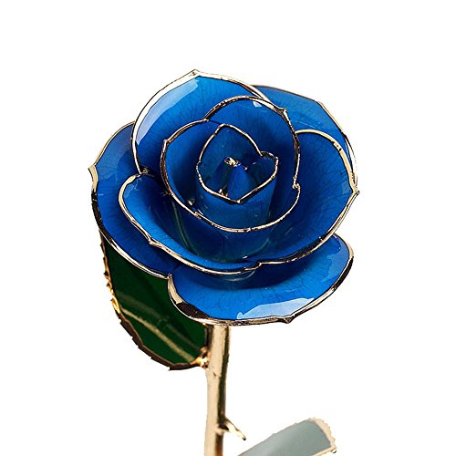 Blue Long Stem Dipped 24K Gold Trim Genuine Rose Enchantress Flora with Thorns in Gift Box Best Gift for Valentine's Day, Mother's Day, Anniversary, Birthday Gift (Blue)
