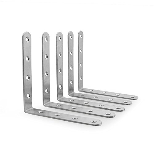 URBEST Angle Bracket Heavy Duty 4.92" Stainless Steel 90 Degree Strong Loading Capacity Shelf Wall Hanging Support Joint Fastener, 5-Pack