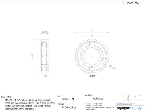 FAG 6207-2RSR-C3 Deep Groove Ball Bearing, Single Row, Double Sealed, Steel Cage, C3 Clearance, Metric, 35mm ID, 72mm OD, 17mm Width, 6300rpm Maximum Rotational Speed, 3440lbf Static Load Capacity, 5730lbf Dynamic Load Capacity