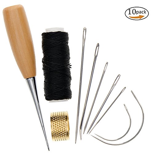 - Package includes: 7 * leather sewing needles, 1 * stitching awl, 1 * leather waxed thread cord, 1 * sewing thimble