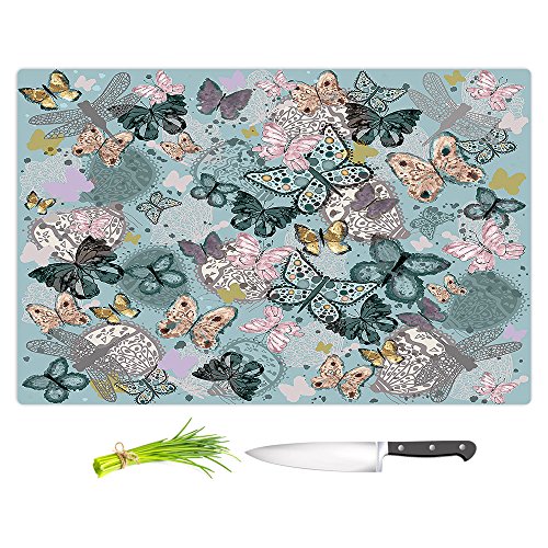 DiaNoche Designs CB-JulieAnsbroButterPastelTurquoise1 Artist Julie Ansbro-Butterflies Pastel Turquoise Cutting Boards from, Small 11" x 8"