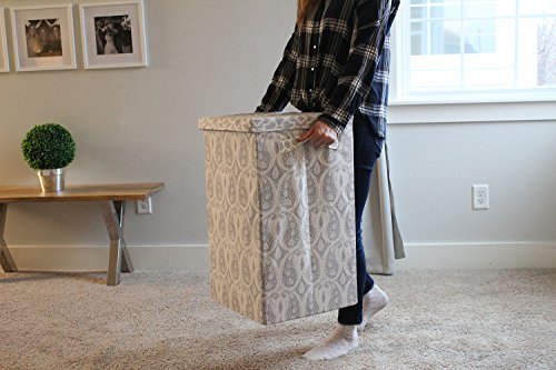 Easy - This clothes hamper is collapsible and lays flat. It features an easy-open lid that is attached to the hamper. There are two easy-carry handles on the hamper, making transportation to the washer / dryer quick and easy.