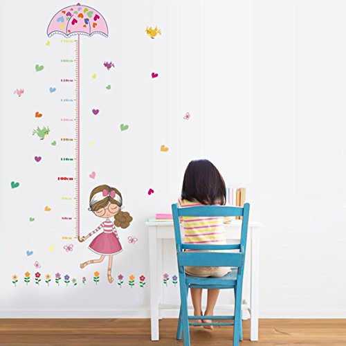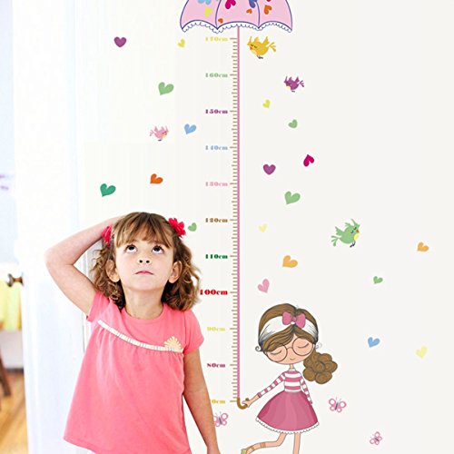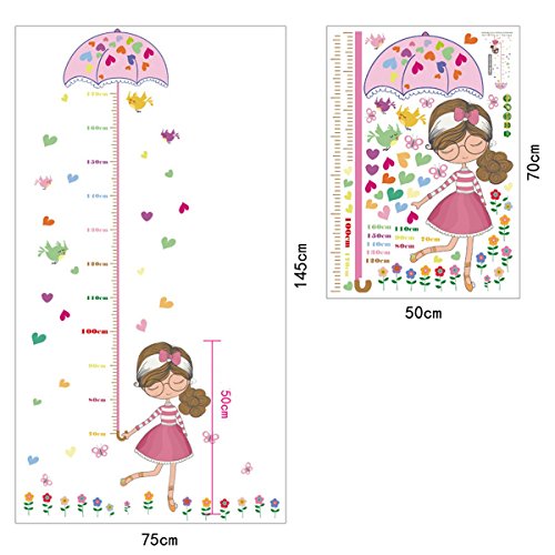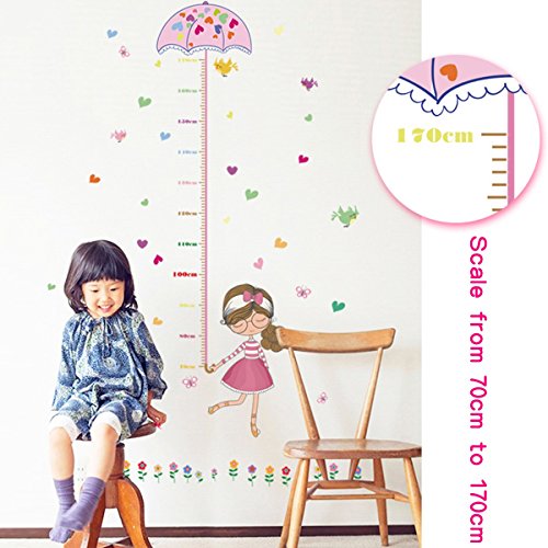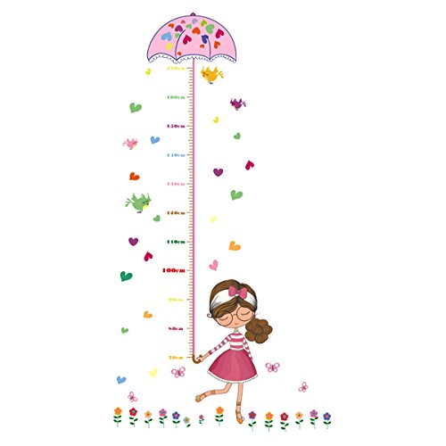 UNIQUEBELLA PVC Height Measurement Growth Chart for Kids Removable Nursery Wall Art Decals Stickers Cartoon Umbrella Wall Decorative for Girls Kid's Bedroom