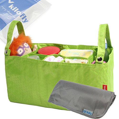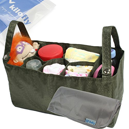 Simply put this KF Baby Diaper Bag Insert Organizer into your favorite purse and both you and your baby are ready to go! KF Baby Diaper Bag Insert Organizer has many pockets and partitions of different sizes, making it easy for you to keep all the necessities of your baby organized and handy. Waterproof material makes the insert organizer durable and easy to wipe clean. Moreover, this is the latest improved version - its compartments are made of thicker material, making it firm and strong enough to stand alone by itself. You can also put it on your baby changing table as an organizer for your baby's essentials.